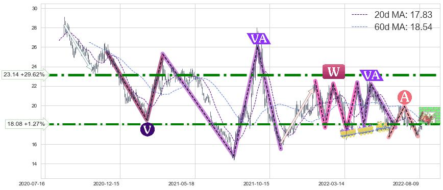 ♘ 阻力价格位23.14,可信任强度94.24%,距离最后交易2022-08-12形成的收盘价格17.85相差 +29.62%