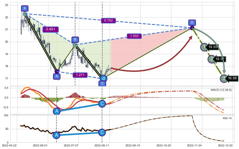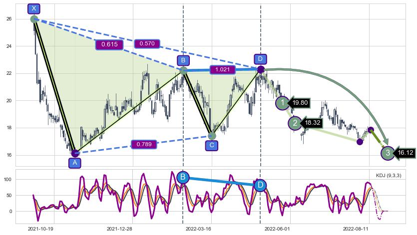 ➣ D点拟合预测价格21.14,距离最后交易收盘价格17.85相差 +18.43%