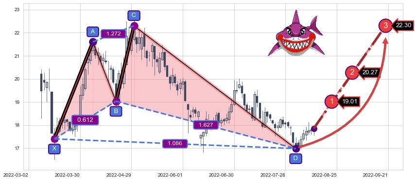 ➣ 已完成【鲨鱼】形态起点X: 2022-03-16, 终点D: 2022-08-03, 共95交易日