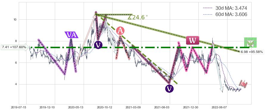 ♘ 阻力价格位7.41,可信任强度99.94%,距离最后交易2022-08-12形成的收盘价格3.570相差 +107.60%