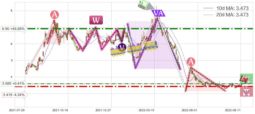 ♘ 阻力价格位6.90,可信任强度82.58%,距离最后交易2022-08-12形成的收盘价格3.570相差 +93.25%