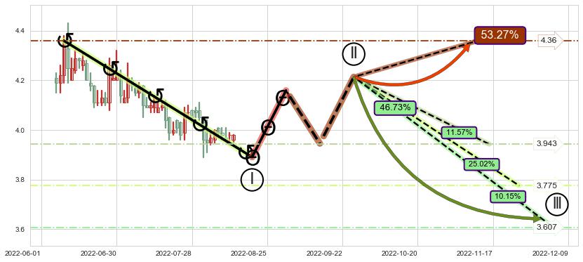 ➢ 2022-05-27到达第❶价格目标位置4.37