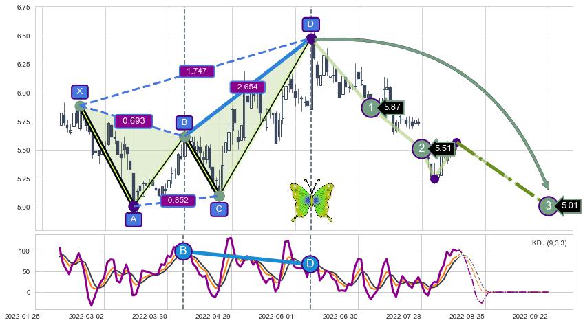 ➣ 已完成【蝴蝶】形态起点X: 2022-02-18, 终点D: 2022-06-09, 共74交易日