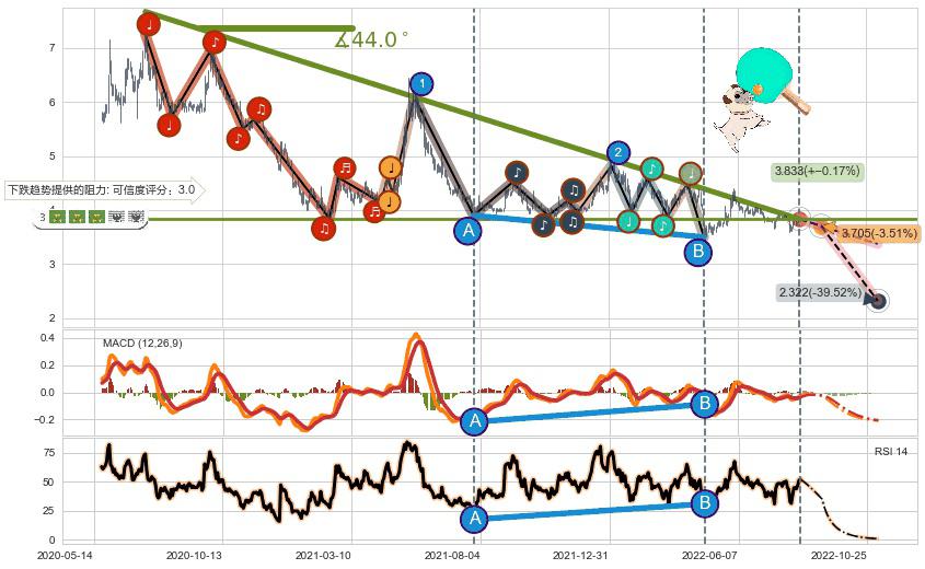 ➢ 【仅预测突破】最后价格:3.840与预测突破价格:4.14→【空间中等】后续最小【反转】第一目标价格→(2022-10-28: 5.14 )