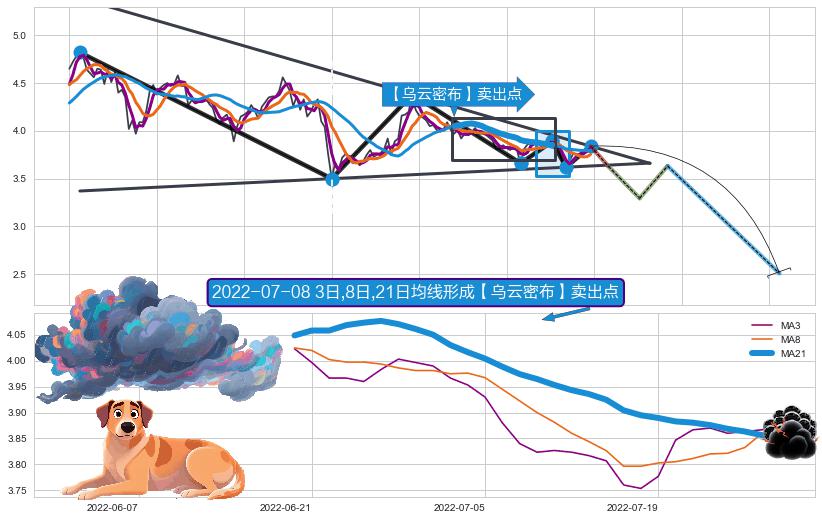 ➣ 【卖2】: 保守型 卖点→(2022-05-20: 3.810 )形成下降三角形整理突破后的【回抽确认】