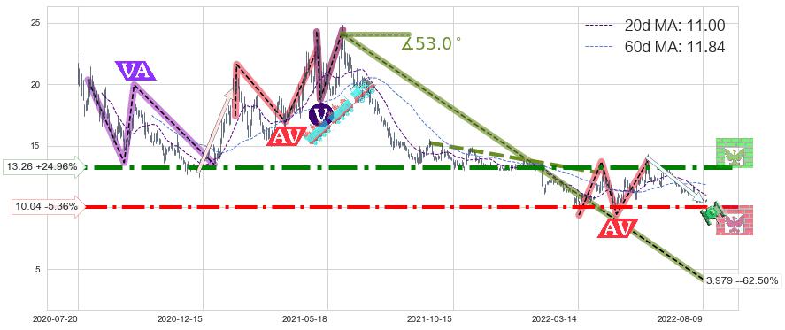 ♘ 阻力价格位13.26,可信任强度89.53%,距离最后交易2022-08-12形成的收盘价格10.61相差 +24.96%