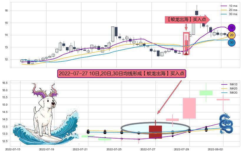 ⚀ 2022-07-27日显现 10日-20日-30日均线 【蛟龙出海】买入点 看多信号,后市看涨,买入