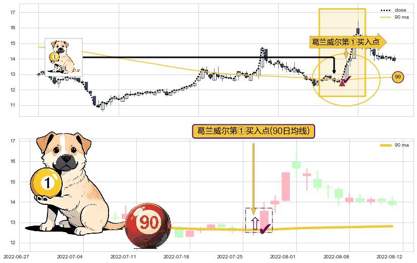 ⚀ 2022-07-26-日显现 葛兰威尔均线 90日均线 第买①入点 走势反转见底信号,后市看涨,买进信号