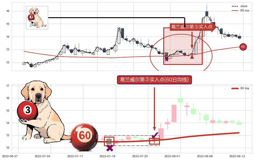 ⚀ 2022-07-26-日显现 葛兰威尔均线 60日均线 第③买入点 上升趋势的中继信号,后市看涨,买进信号