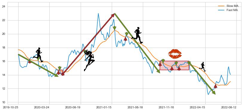 2022-01-24至2022-06-07 慢线与快线呈空头排列, 慢线与快线接触少,无缠绕