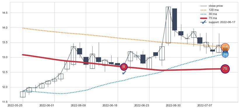 ⚂ 2022-07-15-日均线向下破位,2022-07-26-日重新上穿突破均线,均线支撑再次生效