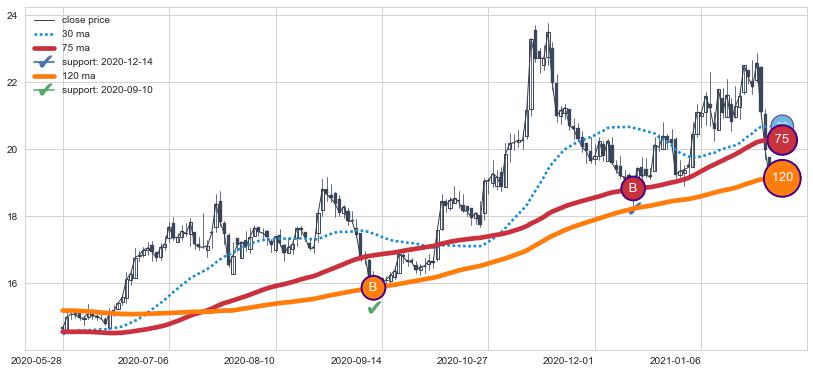 ⚃ 在突破点附近ma走势明显平稳迹象,稍后的走势中ma上翘迹象也出现,信号【可信度中等偏上】