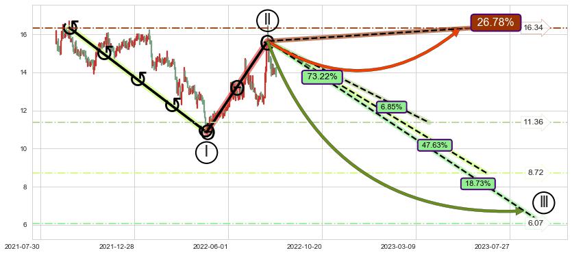 ♘ 阻力价格位16.22,可信任强度93.57%,距离最后交易2022-08-12形成的收盘价格13.87相差 +16.93%