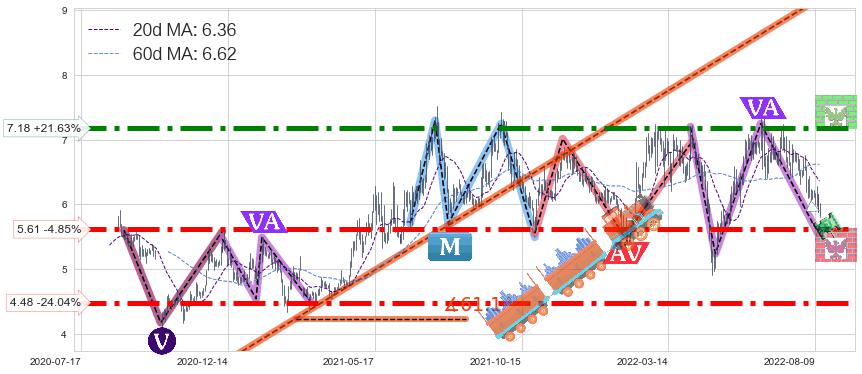 ♘ 支撑价格位5.61,可信任强度94.20%,距离最后交易2022-08-12形成的收盘价格5.90相差 -4.85%