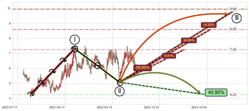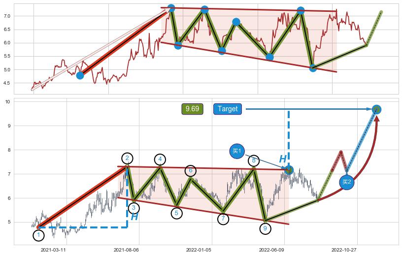 ➢ 【仅预测突破】最后价格:5.90与预测突破价格:7.17→【空间临近】后续最小【整理】第一目标价格→(2022-12-05: 9.69 )