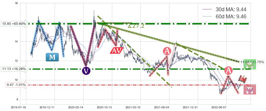 ♘ 阻力价格位11.13,可信任强度70.89%,距离最后交易2022-08-12形成的收盘价格9.57相差 +16.28%