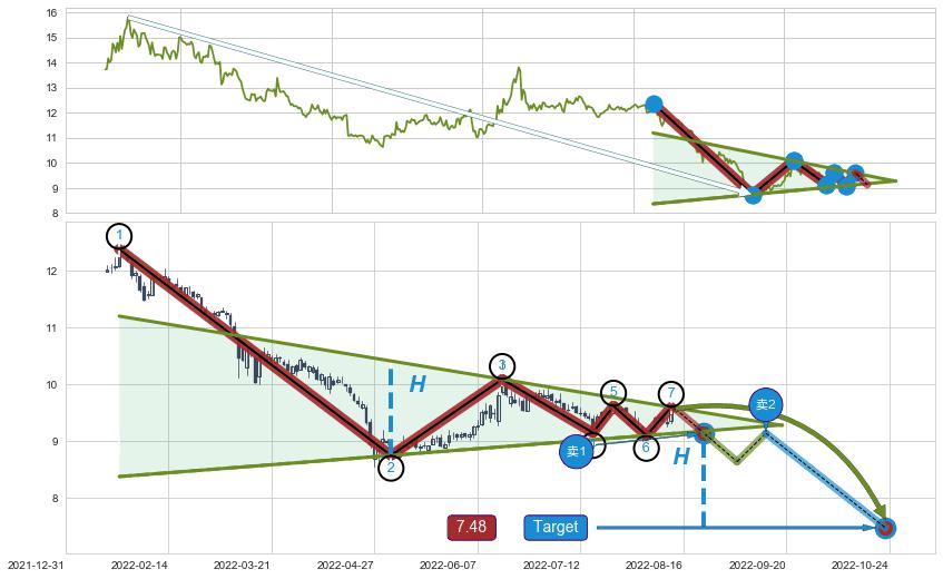 ➣ 【仅预测突破】最后价格:9.57与预测突破价格:9.14→【空间较大】后续最小【整理】第一目标价格→(2022-10-24: 7.48 )