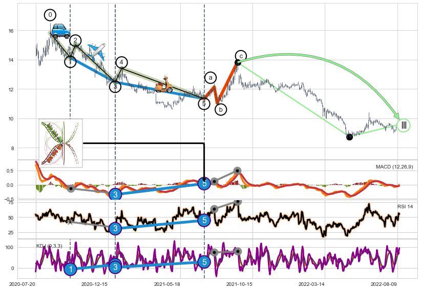 ➣ a,c调整浪MACD, RSI, KDJ走势都【未出现】背离,abc走势延续, 5浪反转概率增强