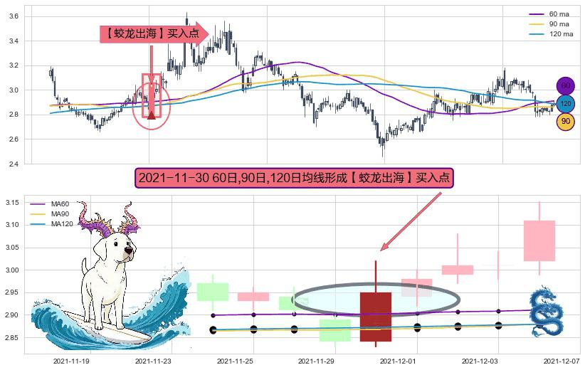 形态多维评估: ⚀ 2021-11-30日显现 60日-90日-120日均线 【蛟龙出海】买入点 看多信号,后市看涨,买入