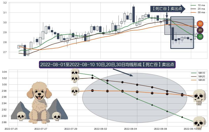 形态多维评估: ⚀ 2022-08-02-日至2022-08-10-日显现 10日-20日-30日均线 【死亡谷】卖出点 看空信号,后市看跌,卖出