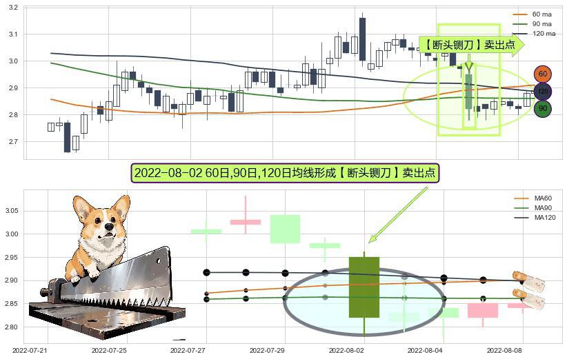 形态多维评估: ⚀ 2022-08-02日显现 60日-90日-120日均线 【断头铡刀】卖出点 看空信号,后市看跌,卖出