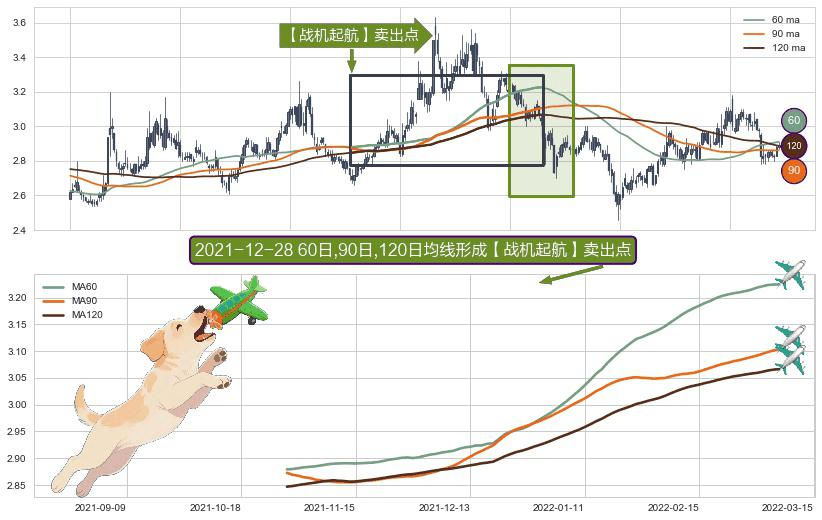 形态多维评估: ⚀ 2021-10-28日-2022-03-07日显现 60日-90日-120日均线 【战机起航】卖出点 看空信号,后市看跌,卖出