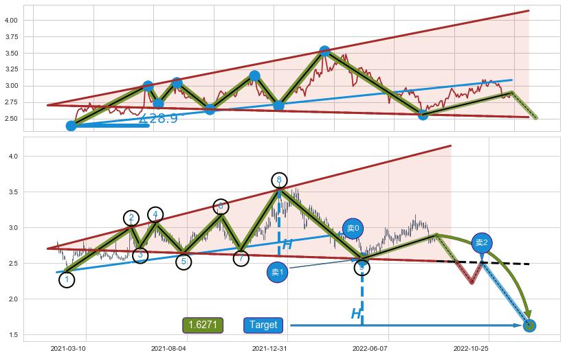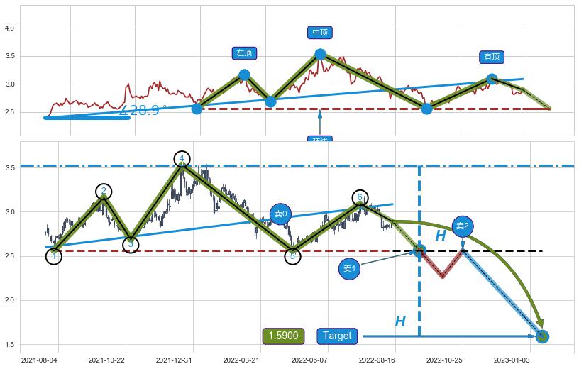 ➣ D点拟合预测价格1.9574,距离最后交易收盘价格2.890相差 -32.27%