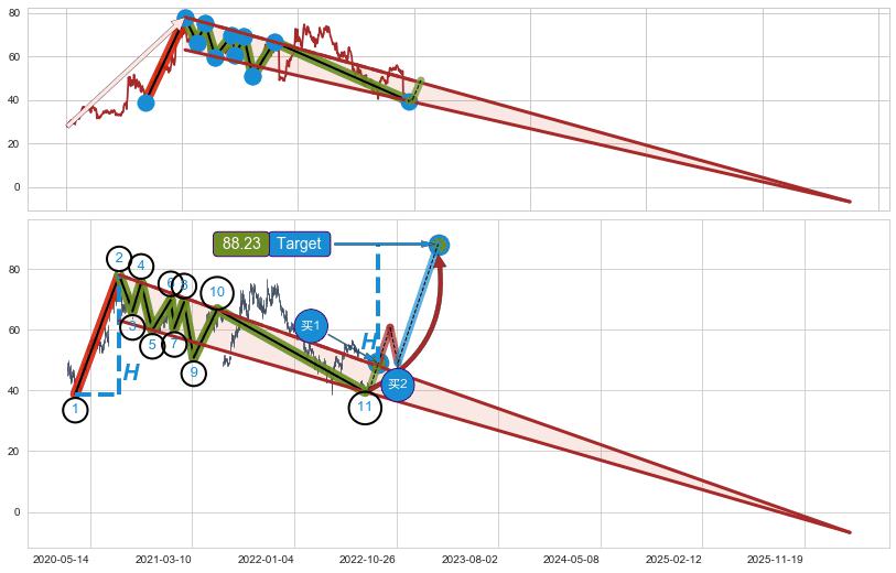 ➣ 【未确认突破,预测即将形成突破】降🚩楔型起点:2020-03-30, 预测突破点:2022-09-07,形态共595交易日