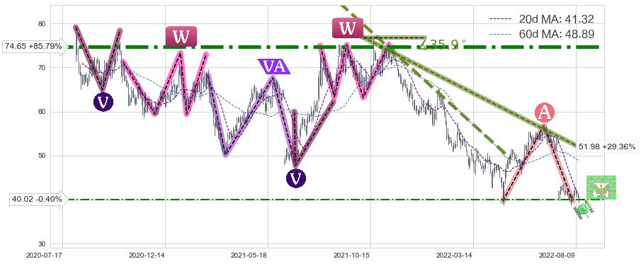 ♘ 阻力价格位40.02,可信任强度52.55%,距离最后交易2022-08-12形成的收盘价格40.18相差 -0.40%