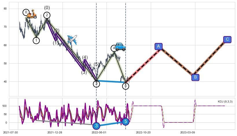| 4 🅚:上涨两颗星 | 上涨三颗星 ➕ 🌊:波浪理论猜想下跌浪5已形成,猜想后续形成abc反弹上涨(均值回复) ☞ 看多信号 ⇥ 【🅚线】交织【图形】⇥ 综合量化分数: 51 | > |