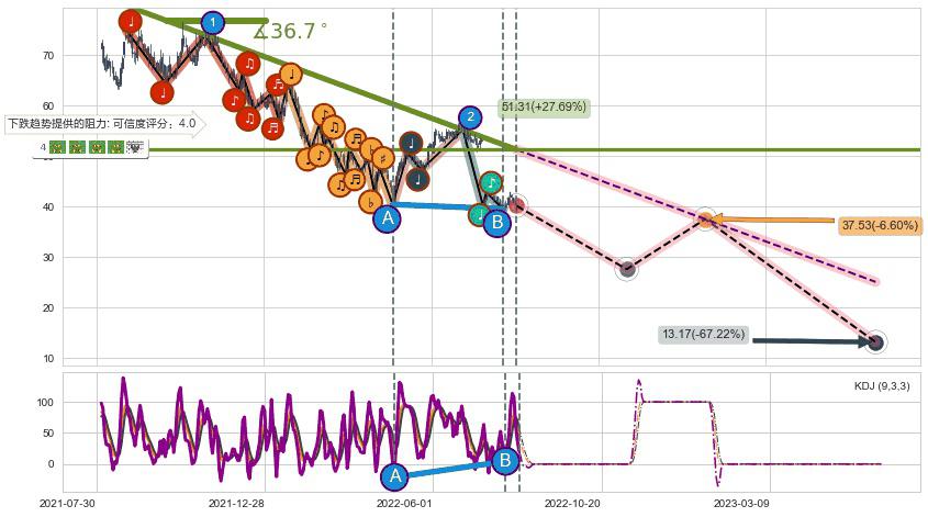 ➣ 预测:2023-01-18,【试探阻力】稳定目前下跌趋势的前提下,预测价格:37.53
