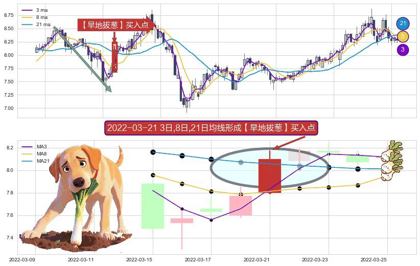 ⚀ 2022-03-21日显现 3日-8日-21日均线 【旱地拔葱】买入点 看多信号,后市看涨,买入