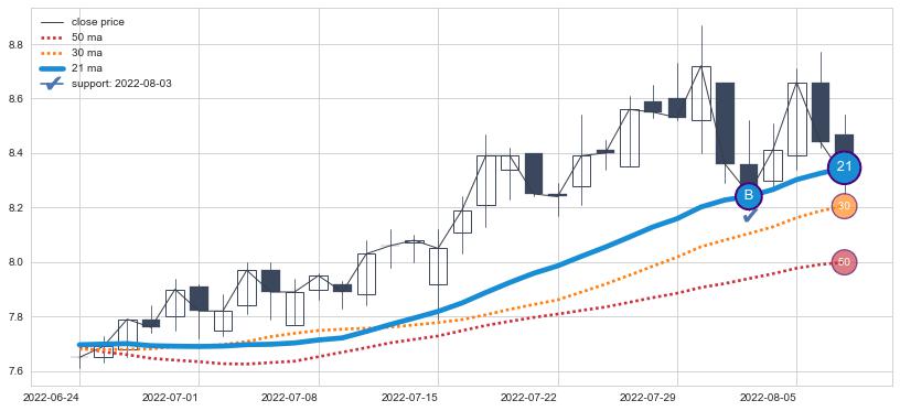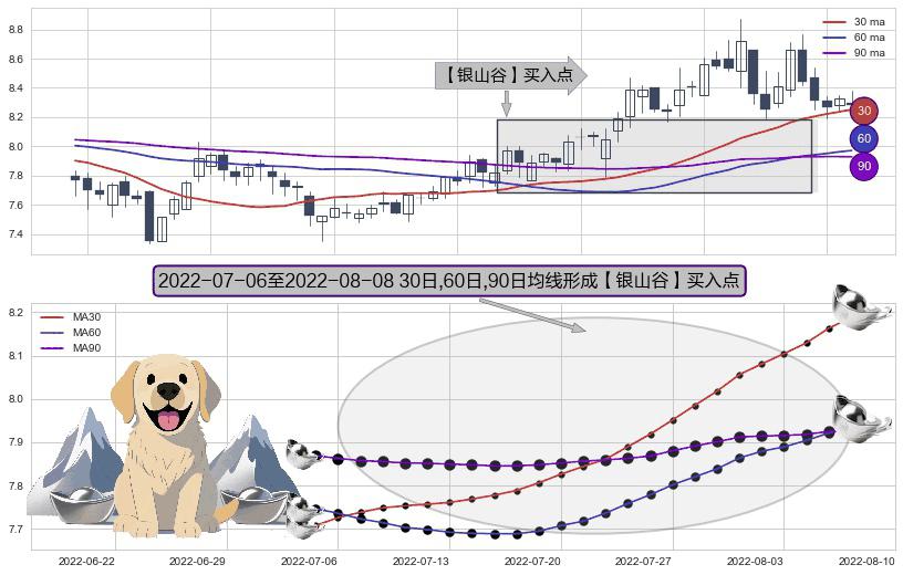 ⚀ 2022-07-07-日至2022-08-08-日显现 30日-60日-90日均线 【银山谷】买入点 看多信号,后市看涨,买入