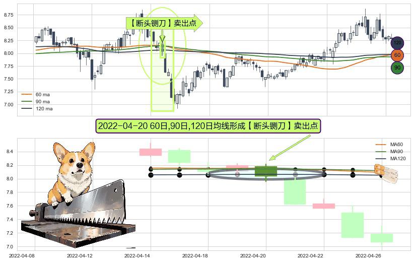 ⚀ 2022-04-20日显现 60日-90日-120日均线 【断头铡刀】卖出点 看空信号,后市看跌,卖出