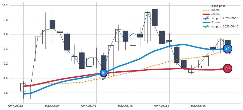 ⚅ 短期均线MA30上穿中期均线MA90形成的交叉是标准 黄金交叉