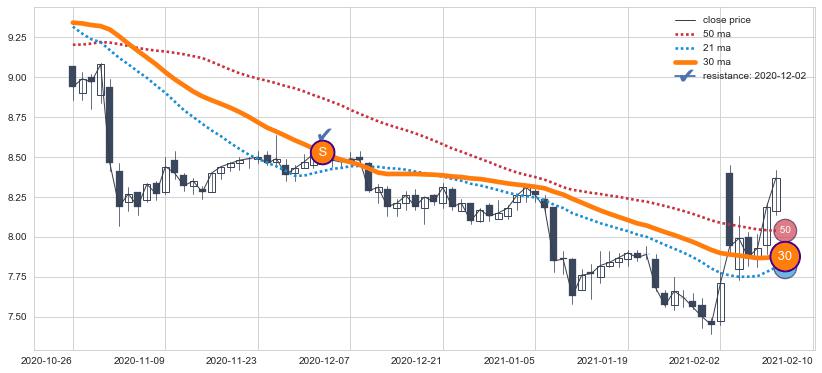 ⚃ 2021-11-30日开盘价格在三条均线下收大阳线,收盘全突破均线,收盘股价上涨1.54%