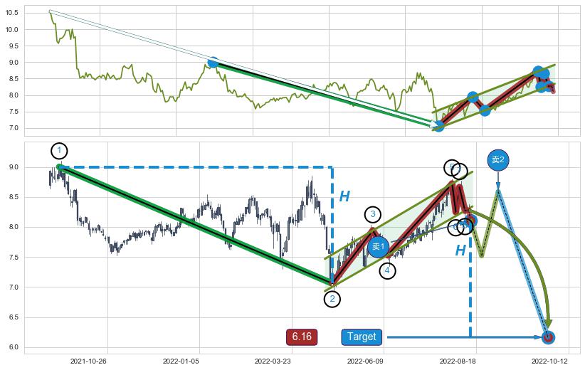 ➢ 【仅预测突破】最后价格:8.28与预测突破价格:8.10→【空间临近】后续最小【整理】第一目标价格→(2022-10-12: 6.16 )