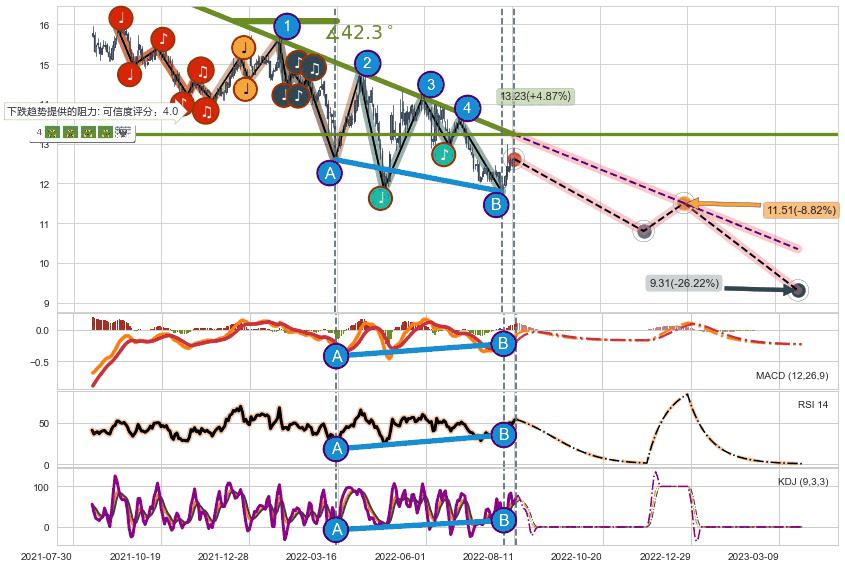 ➣ 预测:2022-12-27,【试探阻力】稳定目前下跌趋势的前提下,预测价格:11.51