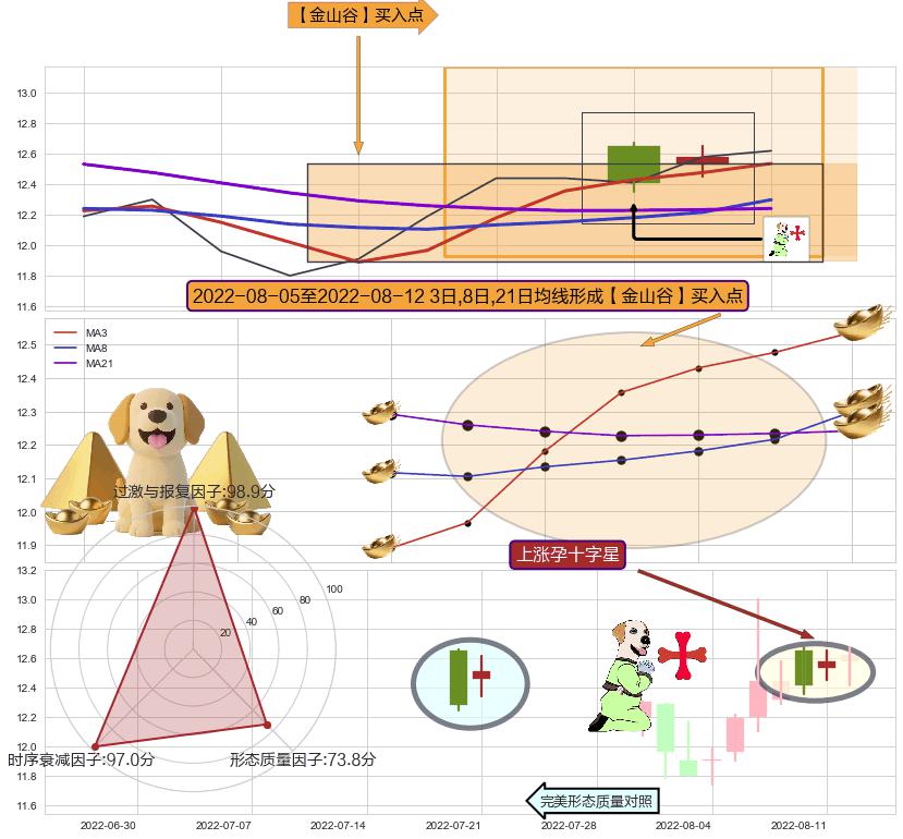 从2022-08-03至2022-08-12,共包含8个交易日,阶段股价上涨6.78%,阶段股价变动位移路程比: 1 : 1.1