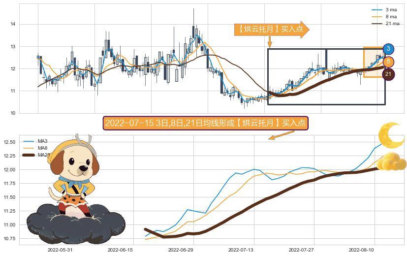 ⚀ 2022-06-17日-2022-08-12日显现 3日-8日-21日均线 【烘云托月】买入点 看多信号,后市看涨,买入