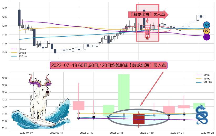 ⚀ 2022-07-18日显现 60日-90日-120日均线 【蛟龙出海】买入点 看多信号,后市看涨,买入