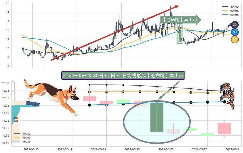 ⚀ 2022-05-24日显现 30日-60日-90日均线 【绝命跳】卖出点 看空信号,后市看跌,卖出