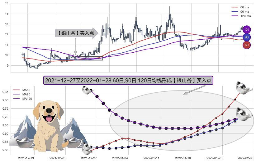 ⚀ 2021-12-28-日至2022-01-28-日显现 60日-90日-120日均线 【银山谷】买入点 看多信号,后市看涨,买入