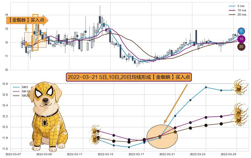 ⚀ 2022-03-21日显现 5日-10日-20日均线 【金蜘蛛】买入点 看多信号,后市看涨,买入