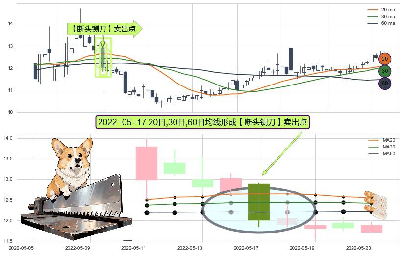 ⚀ 2022-05-17日显现 20日-30日-60日均线 【断头铡刀】卖出点 看空信号,后市看跌,卖出