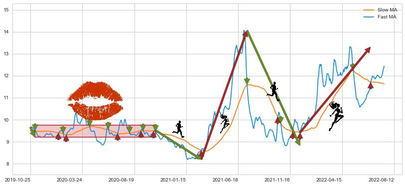 2021-12-13至2022-07-07 慢线与快线呈多头排列, 慢线与快线接触少,无缠绕