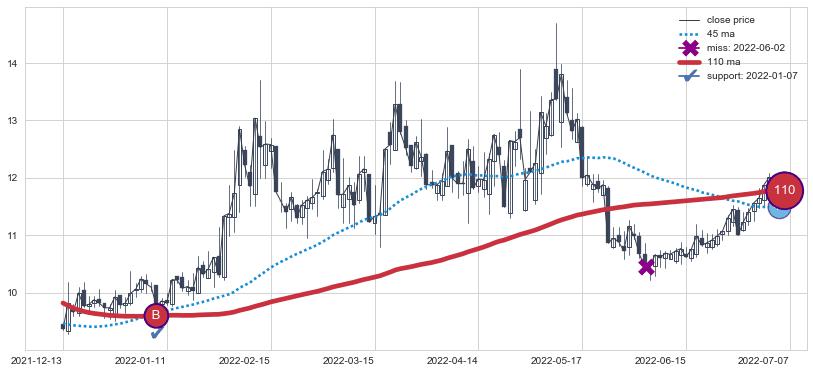 ⚂ 2022-06-02-日均线向下破位,2022-06-16-日重新上穿突破均线,均线支撑再次生效