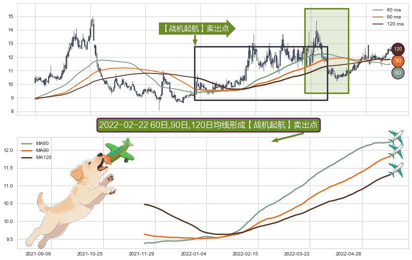 ⚀ 2021-11-22日-2022-05-23日显现 60日-90日-120日均线 【战机起航】卖出点 看空信号,后市看跌,卖出