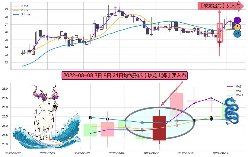 形态多维评估: ⚀ 2022-08-08日显现 3日-8日-21日均线 【蛟龙出海】买入点 看多信号,后市看涨,买入