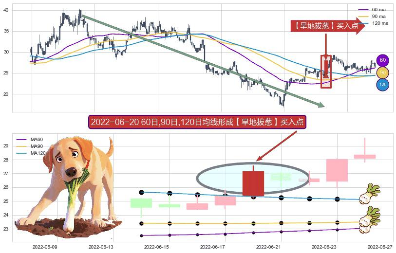 形态多维评估: ⚀ 2022-07-06-日至2022-08-09-日显现 60日-90日-120日均线 【银山谷】买入点 看多信号,后市看涨,买入